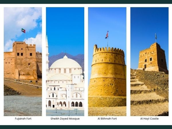Fujairah is rich in cultural and historical landmarks that enhance any journey. Fujairah Fort, one of the oldest in the UAE, offers panoramic views of the city and mountains and a glimpse into the emirate’s past. Nearby, Sheikh Zayed Mosque impresses with its white marble and intricate designs, particularly in the morning or late afternoon light.